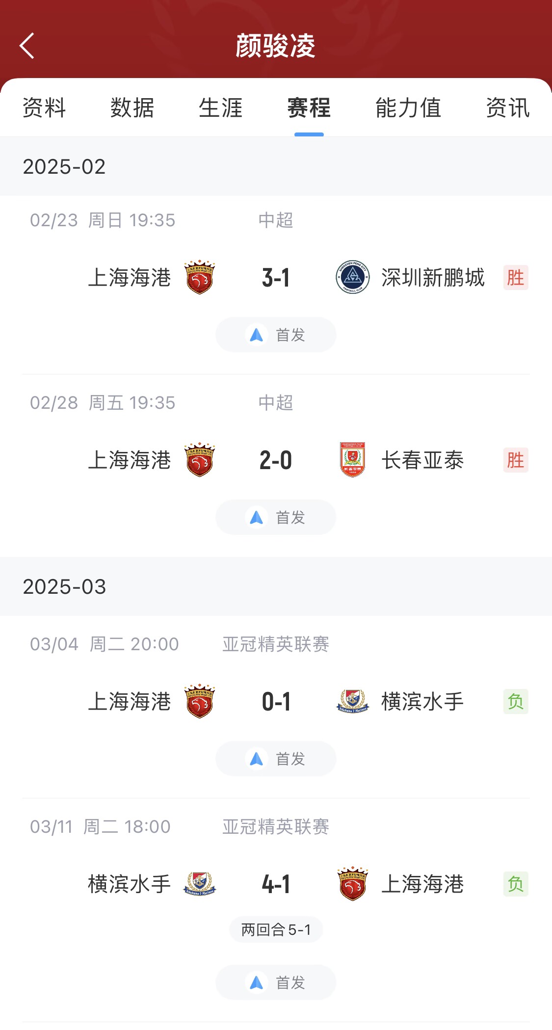 但2025赛季中超首轮泰山vs河南,王大雷出击踢倒对手染红,2月23日之后未参加正式比赛。而颜骏凌出战了中超+亚冠的所有比赛。