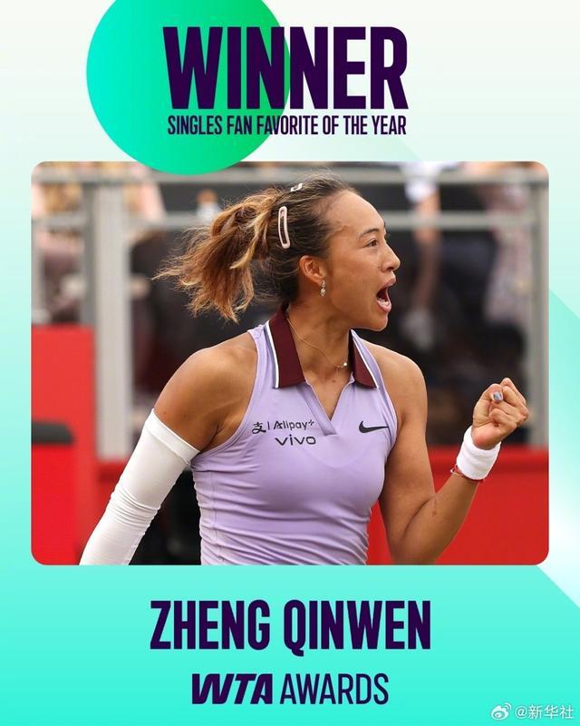 据@WTA国际女子网球协会 ,中国网球运动员郑钦文连续两年当选WTA年度最受欢迎单打球员!祝贺!