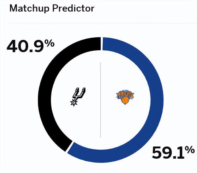 赛前,美媒ESPN对本场比赛进行了胜率预测,尼克斯胜率为59.1%,略占上风,马刺队胜率则仅有40.9%。 。