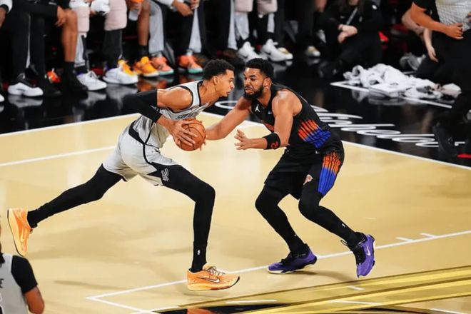 马刺队这边,文班亚马出战25分钟,投篮17中7、三分6中2得到18分6篮板1助攻1抢断2盖帽;哈珀14投7中,其中三分球7投5中,得到21分7篮板;斯尔得到15分7篮板12助攻,创造NBA杯决赛单场最高助攻数纪录,一战连创两大NBA神迹。